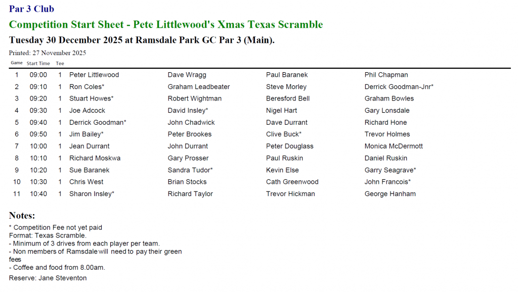 Please check the handicap list on this website – here – to see whether or not we have you correctly identified or not as a Ramsdale Park Golf Centre member.